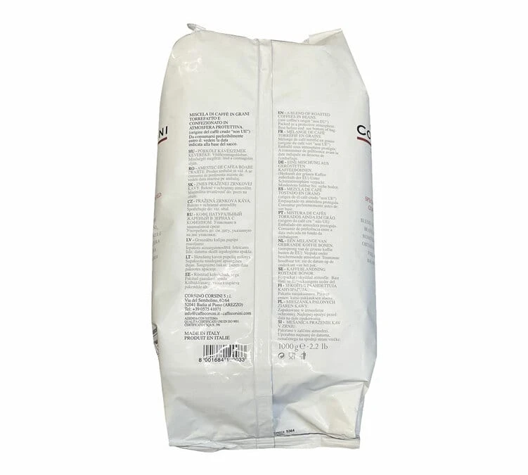 Ce café en grain Corsini, produit à partir de grains de café arabica, est un assemblage réussi. Son résultat en tasse est un savoureux mélange de savoir-faire et de ce qui se fait de mieux en termes de grains.