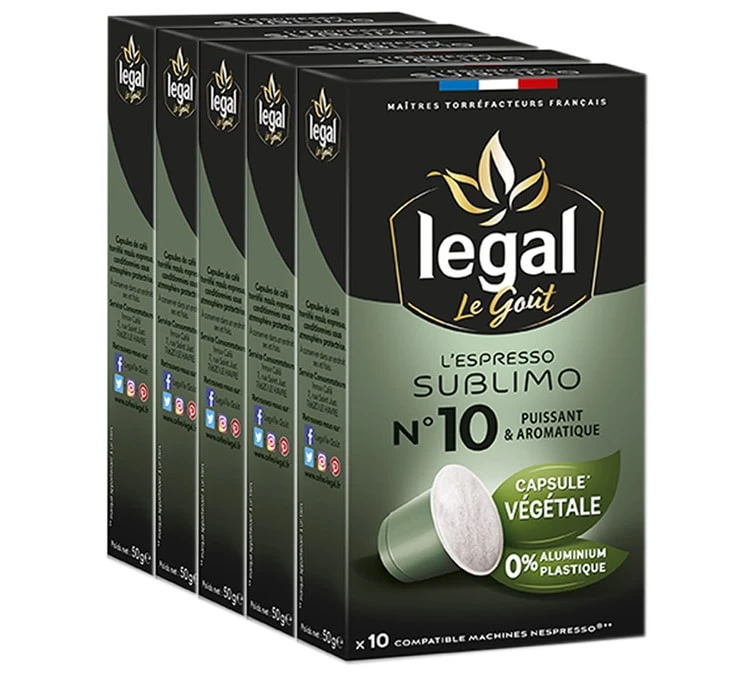 Legal a mis au point une capsule 100% compatibles avec les machines à capsules compatibles Nespresso® et réalisée à base de matériaux végétales. Elles sont également biodégradables et certifiées 0% d’aluminium, 0% de plastique dans le but de réduire l’empreinte environnementale.
