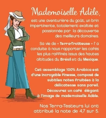 Les capsules Adèles de TerraMoka sont composées d’un mélange parfait du Brésil et du Mexique. Elles libèrent en tasse une belle crème dense ainsi que des notes grillées et végétales. Conditionnement : 5 boîtes compostables de 15 capsules conçues en amidon de maïs.