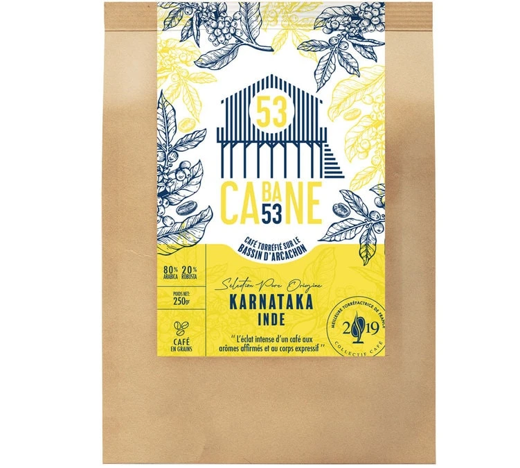 Découvrez le café en grain Karnataka de Cabane 53, un mélange 80% d’Arabica et 20% de Robusta d’Inde pour vous offrir un café intense aux arômes affirmés et au corps expressif. Conditionnement : 250g.