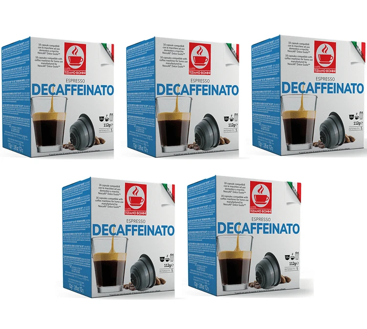 Découvrez ces capsules Nescafe® Dolce Gusto® compatibles Decaffeinato . Ces dosettes Nescafe® Dolce Gusto® compatibles sont idéales pour les personnes ne voulant pas renoncer au plaisir du café. Conditionné en 5 sachets de 16 capsules.