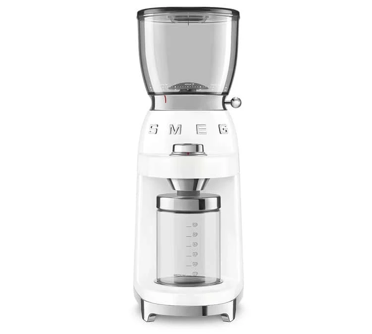 Le SMEG CGF01WHEU Blanc est un moulin à café polyvalent, avec un design rétro tout droit des années 50.