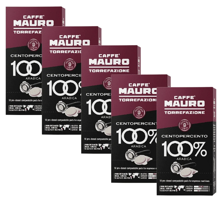 Découvrez les capsules Centopercento du torréfacteur italien Caffe Mauro. En tasse cet expresso vous offrira une belle attaque aux notes de fruits mûrs puis laissera place à une longueu en bouche sur fond cacaoté. Capsules compatibles Nespresso®. Conditionnement : 5 boîtes de 10 capsules.