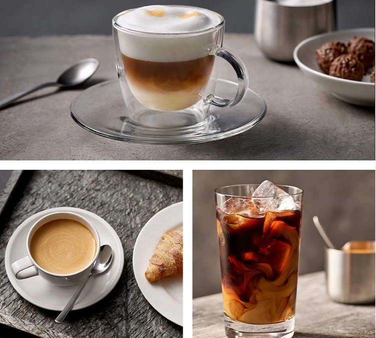 Vous pouvez préparer des boissons pour tous les goûts : ristretto, espresso, eau chaude, mousse de lait, espresso macchiato, cappuccino, latte macchiato.