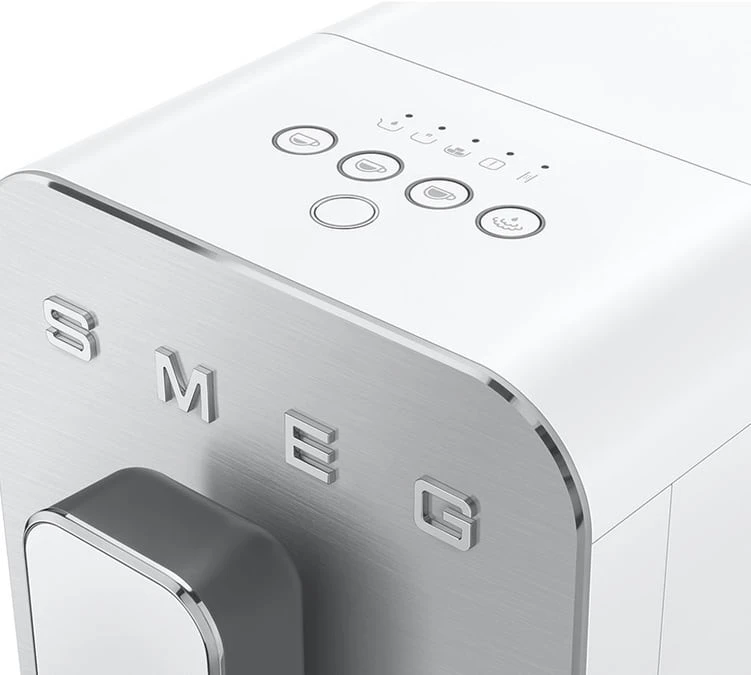 Cet expresso broyeur Smeg offre un confort d’utilisation parfait grâce à ses boutons plats situés sur le dessus de la machine. Elle offre deux menus pour une utilisation unique de chaque bouton. Ces menus se différencient par un changement de couleur des Leds : blanches pour le premier menu, orange pour le second.